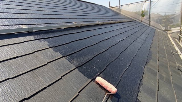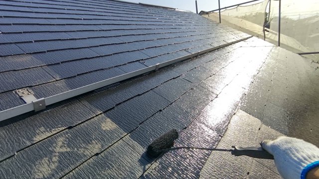 コロニアル屋根 下塗りシーラー及び中塗り塗装。