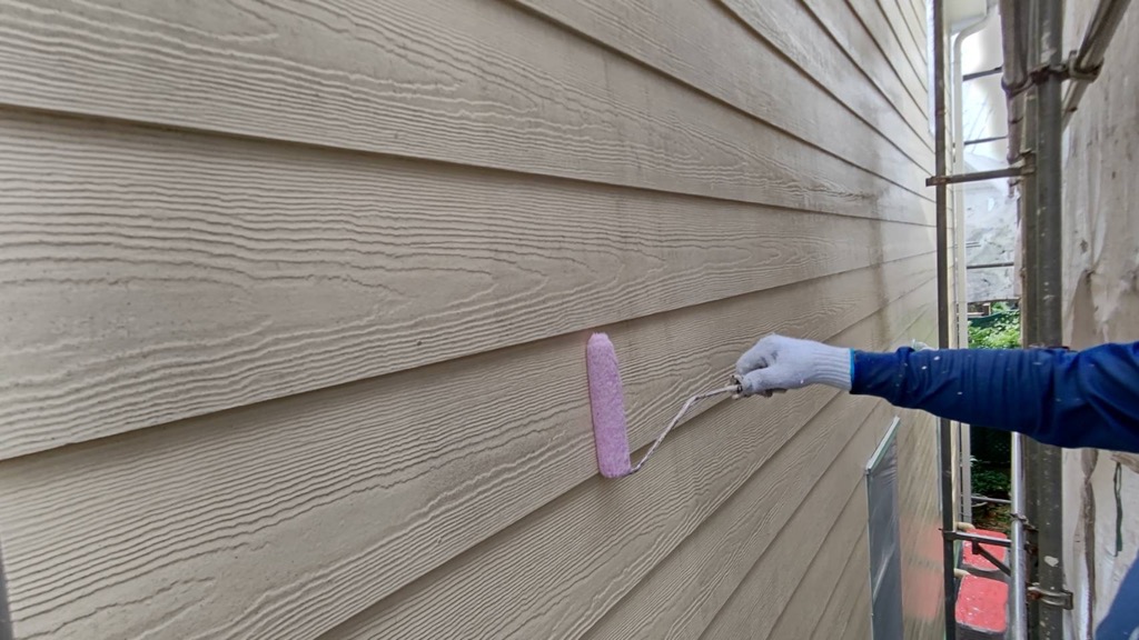 外壁 養生作業、下塗りシーラー及び中塗り塗装。