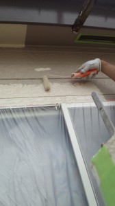 サイディングなのでシーラーの塗布が最初です。続いてマイルドシリコン(弱溶剤系)による中塗り、及び上塗り。