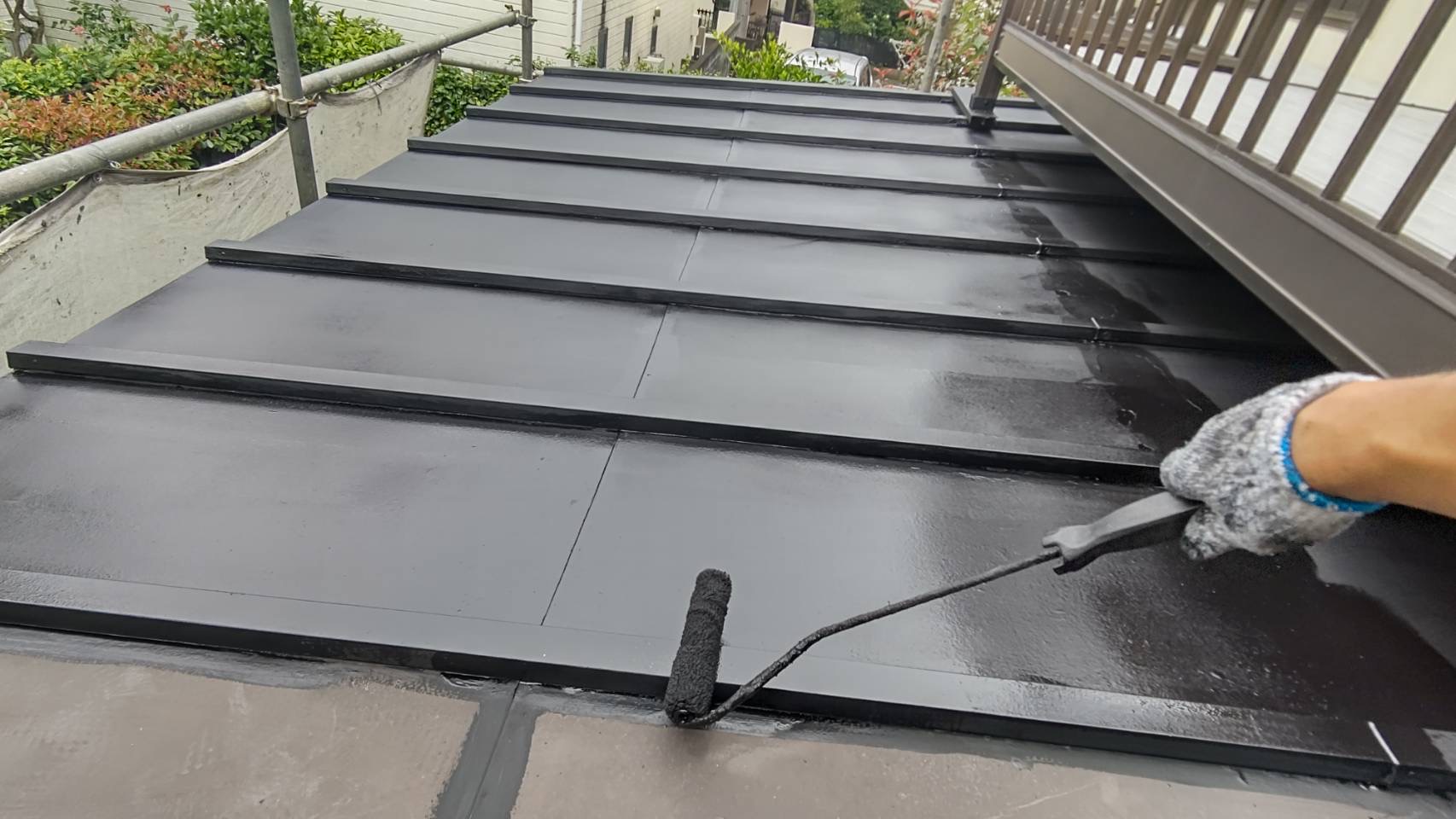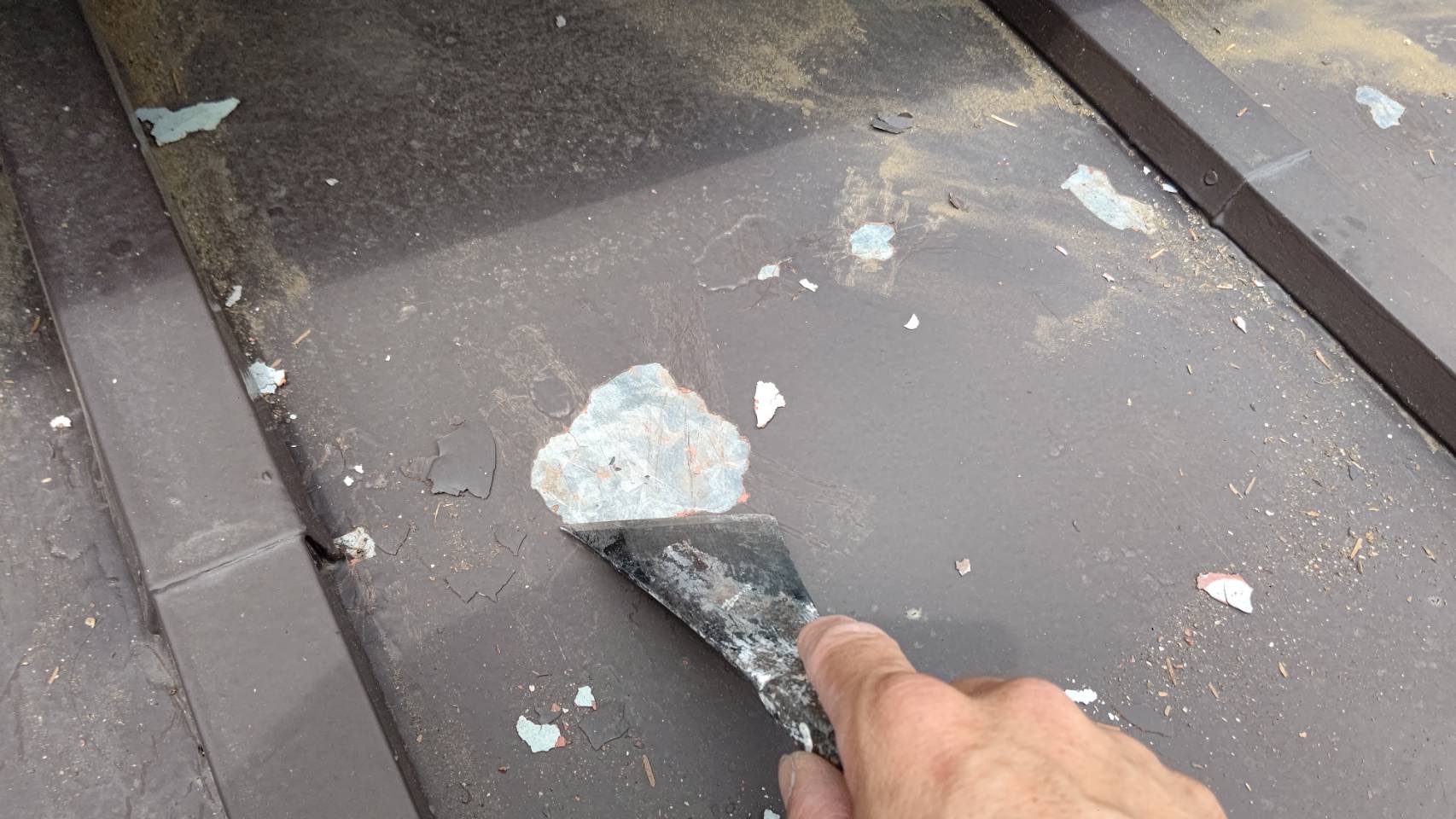 下屋根 けれん作業、さび止め塗装。
