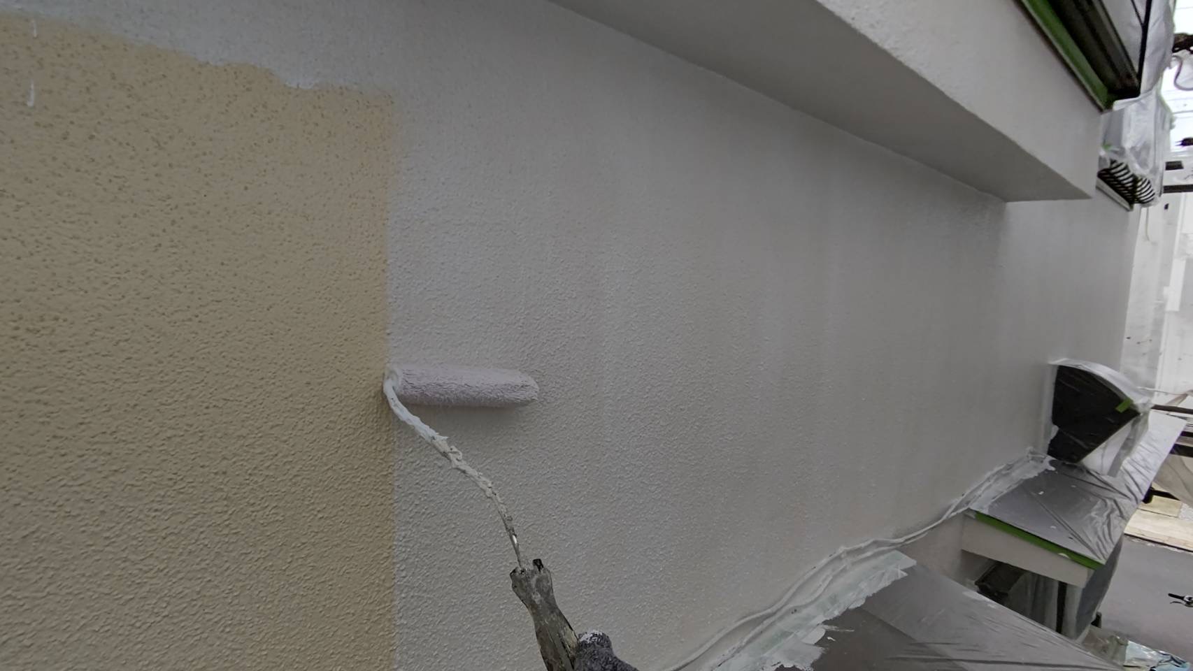 外壁養生作業。