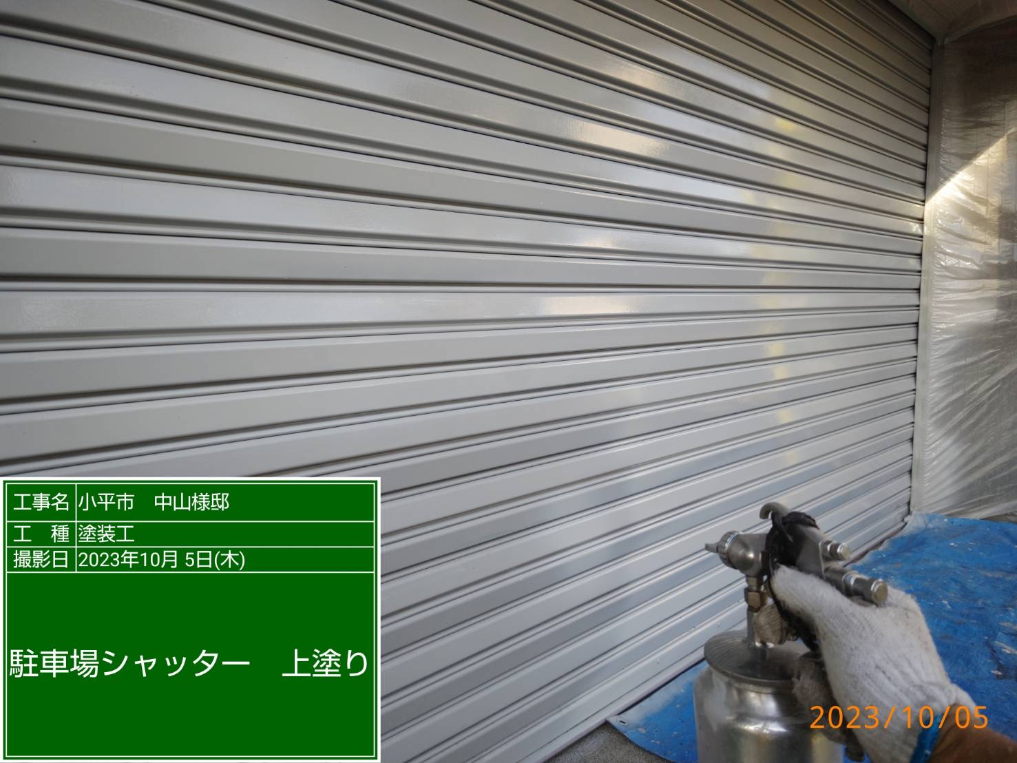 シャッター上塗り塗装。