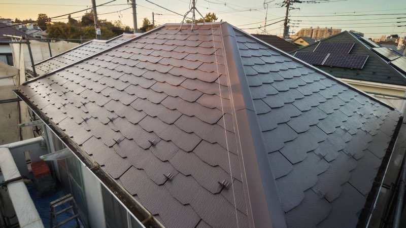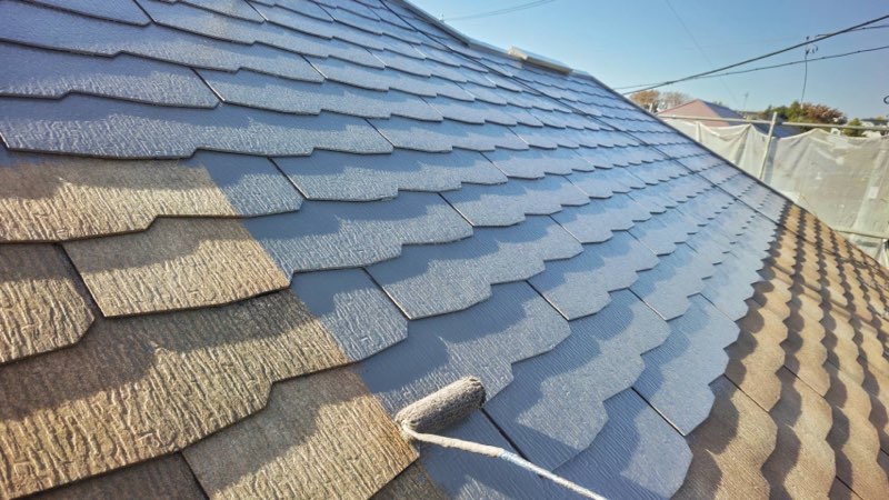コロニアル屋根 中塗り及び上塗り塗装。