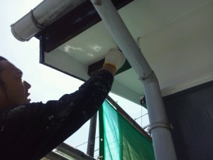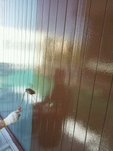 続いて、破風板の塗装。上塗りです。