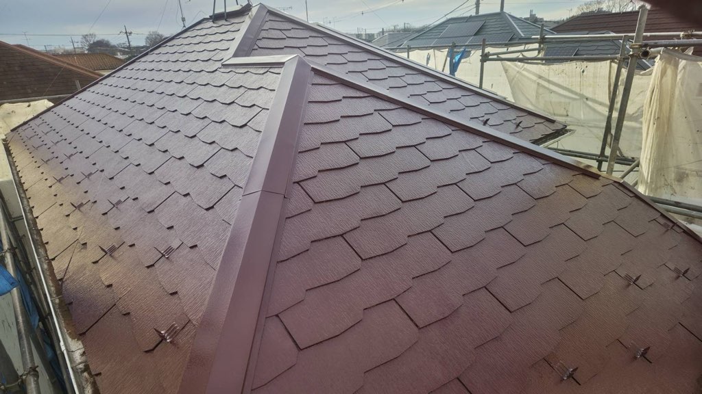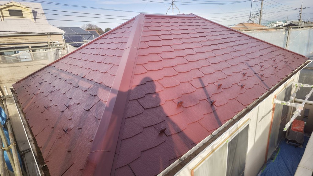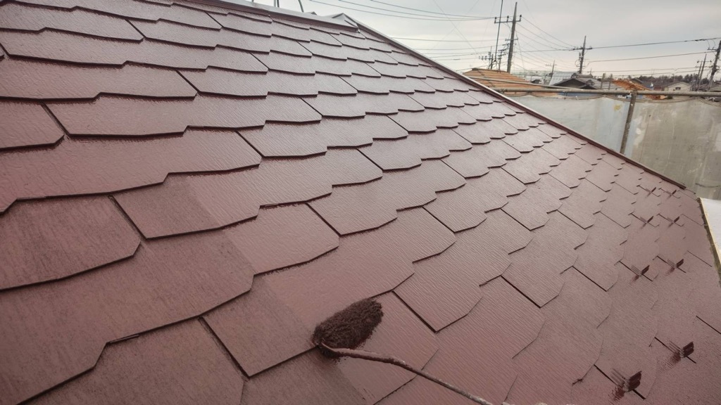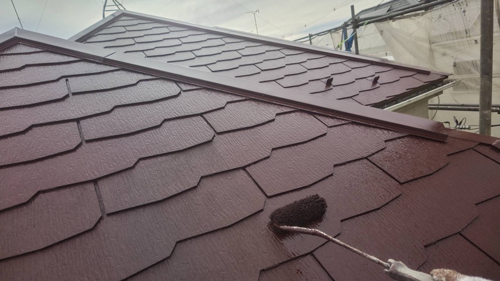 コロニアル屋根 上塗り塗装。