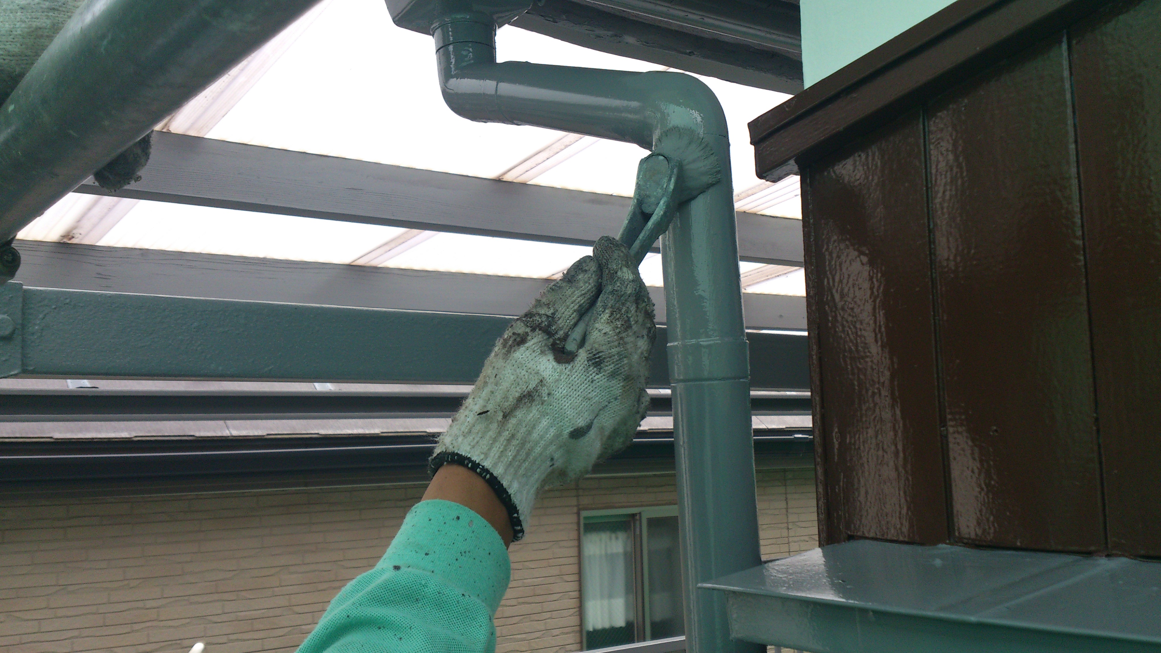 今日は雨樋やトタン屋根等の板金部分の塗装。