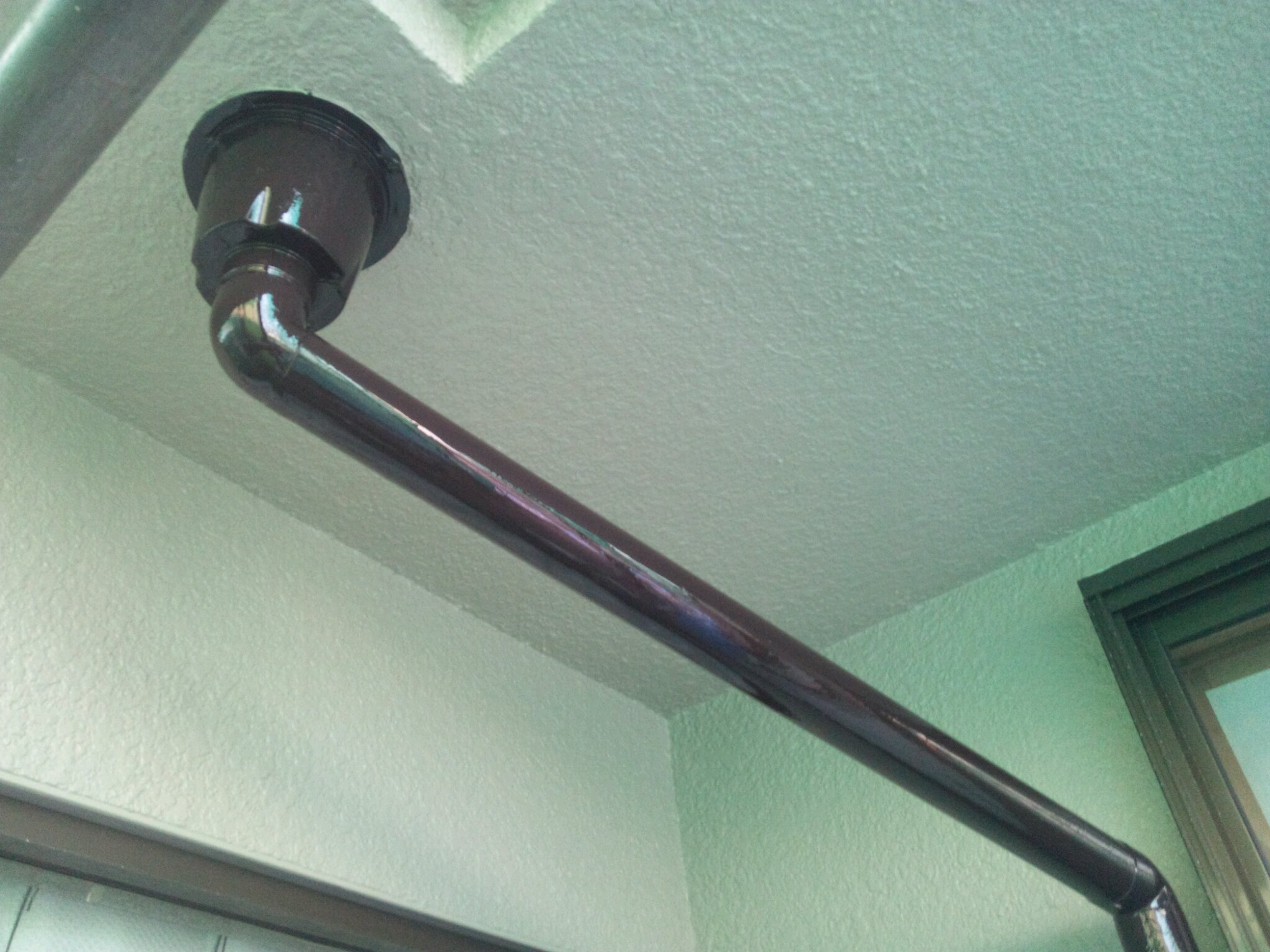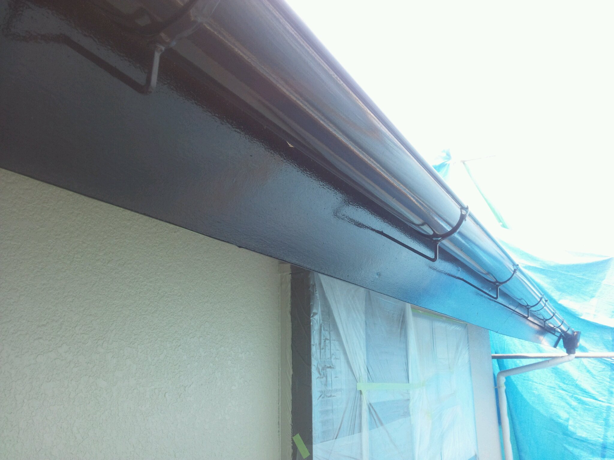 午後より養生を外しながら破風板や雨樋、それにトタンの霧除け等を塗らせていただきました。