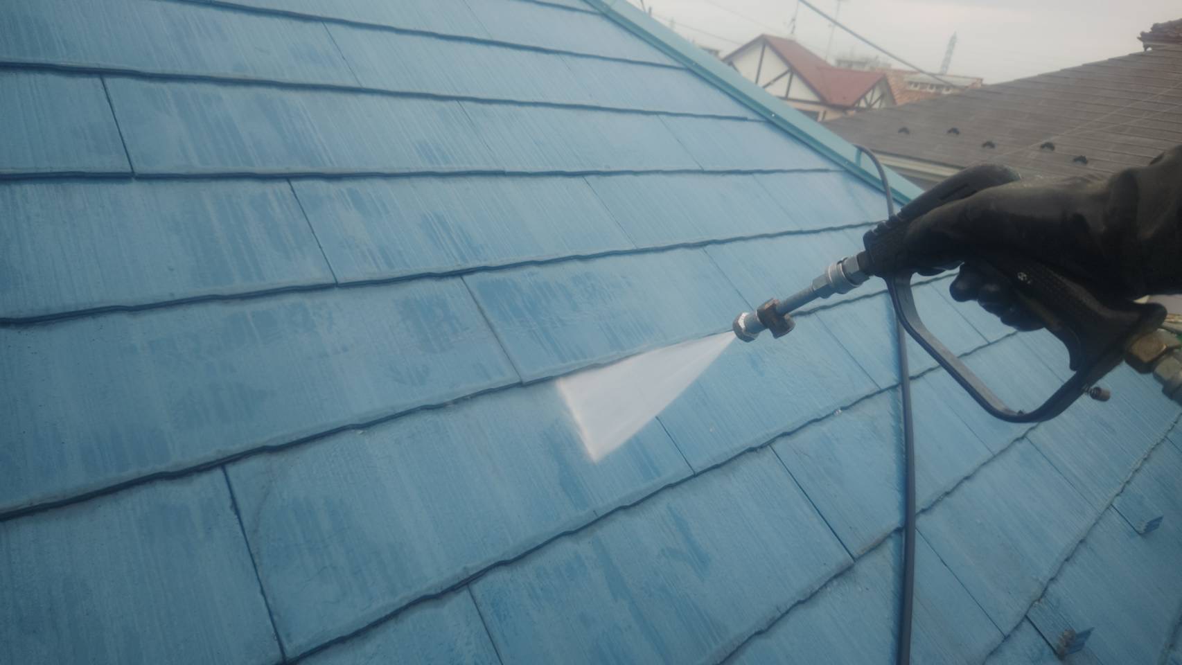 高圧洗浄作業。