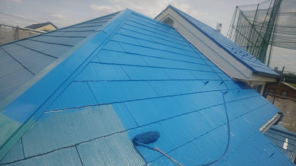 屋根 プライマー及び中塗、上塗り塗装。