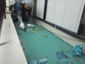 旧塗膜が防水ではなく、防塵塗料を塗装してありました。よく雨漏れがしてなかったか不思議なくらいです。
