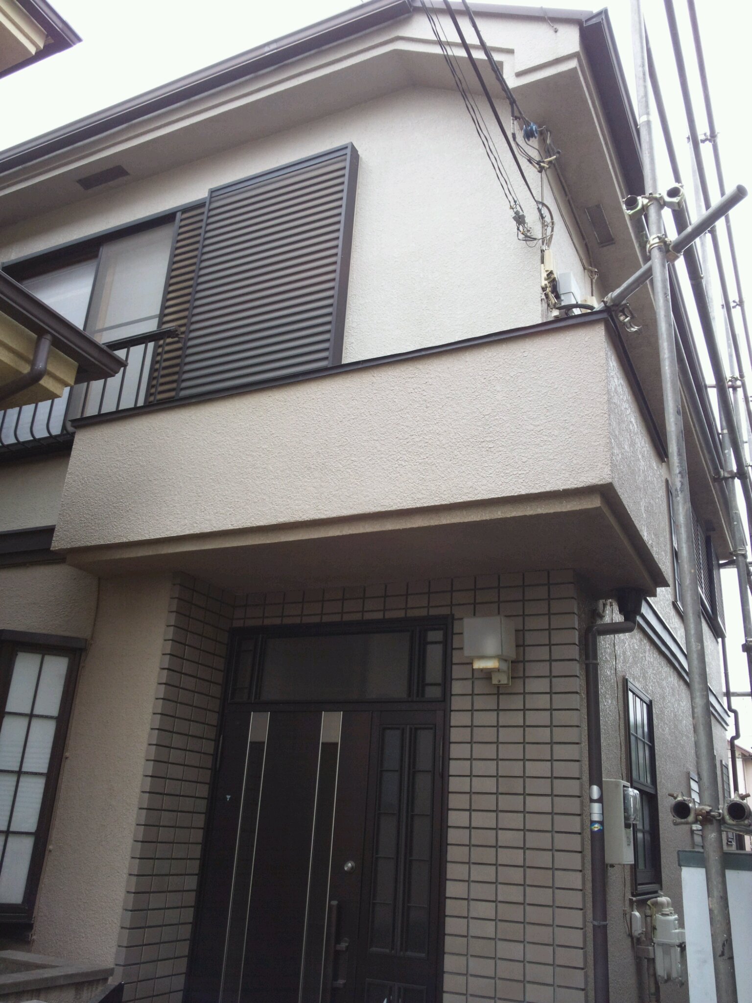 今現在は2色ですが、今回は外壁が1色になり、鋼製の雨戸や戸袋も塗装予定です。