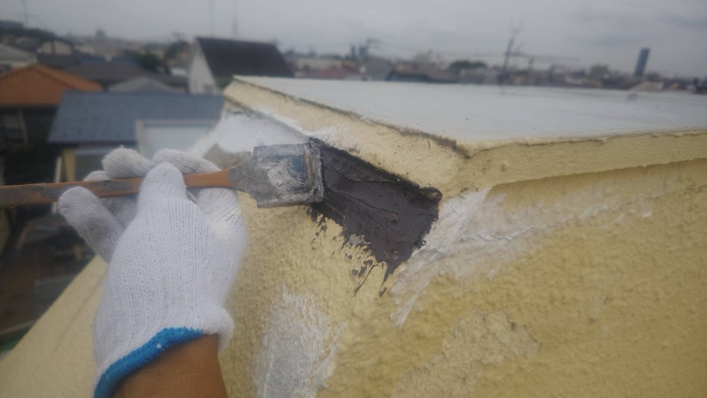 外壁 養生、下塗り塗装。