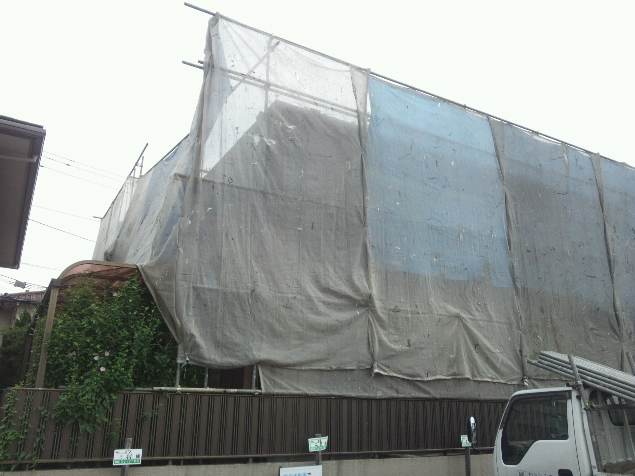 ただ、裏が大きな駐車場なので、今日も含めたこれからの作業はかなり慎重にさせていただき、飛散に注意したいと思います。