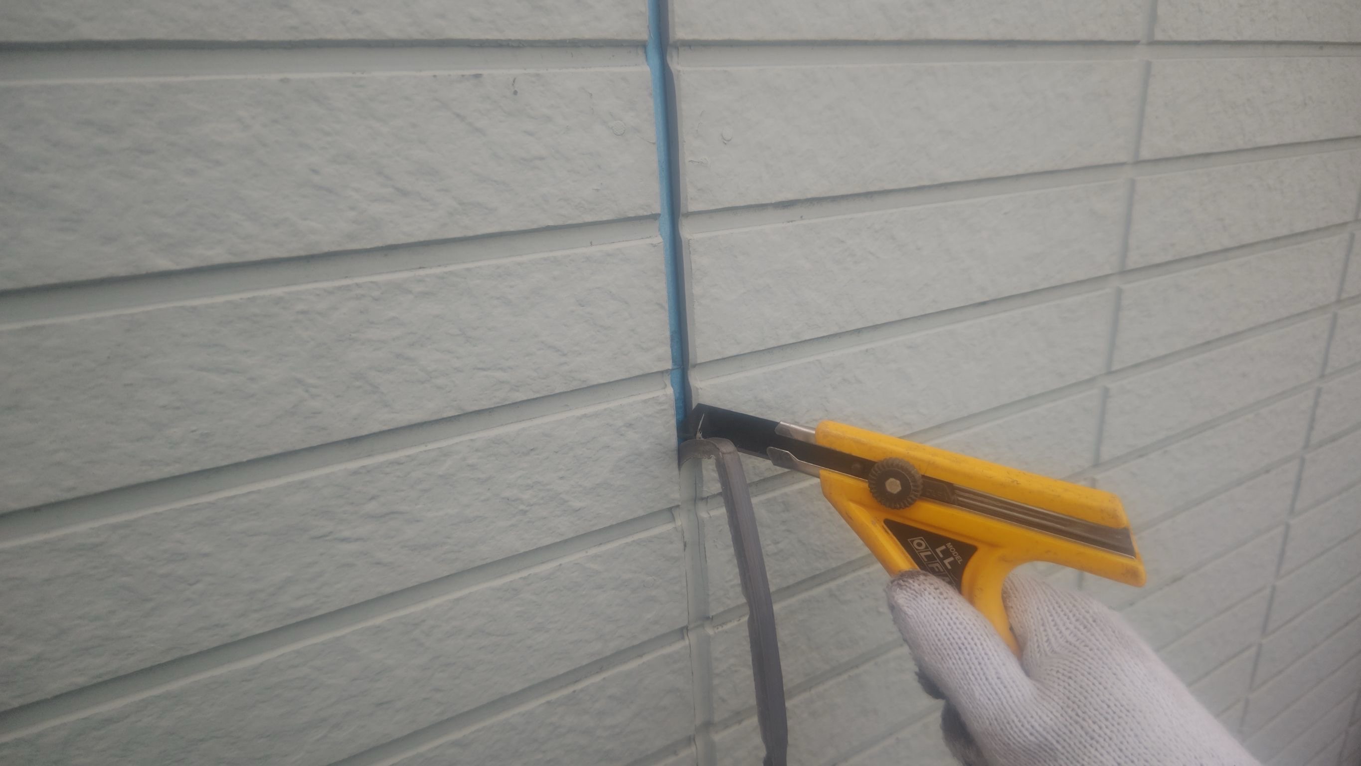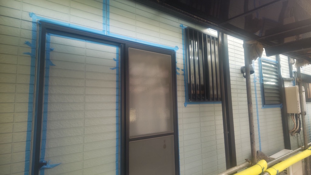 シーリング用テープ貼り作業。