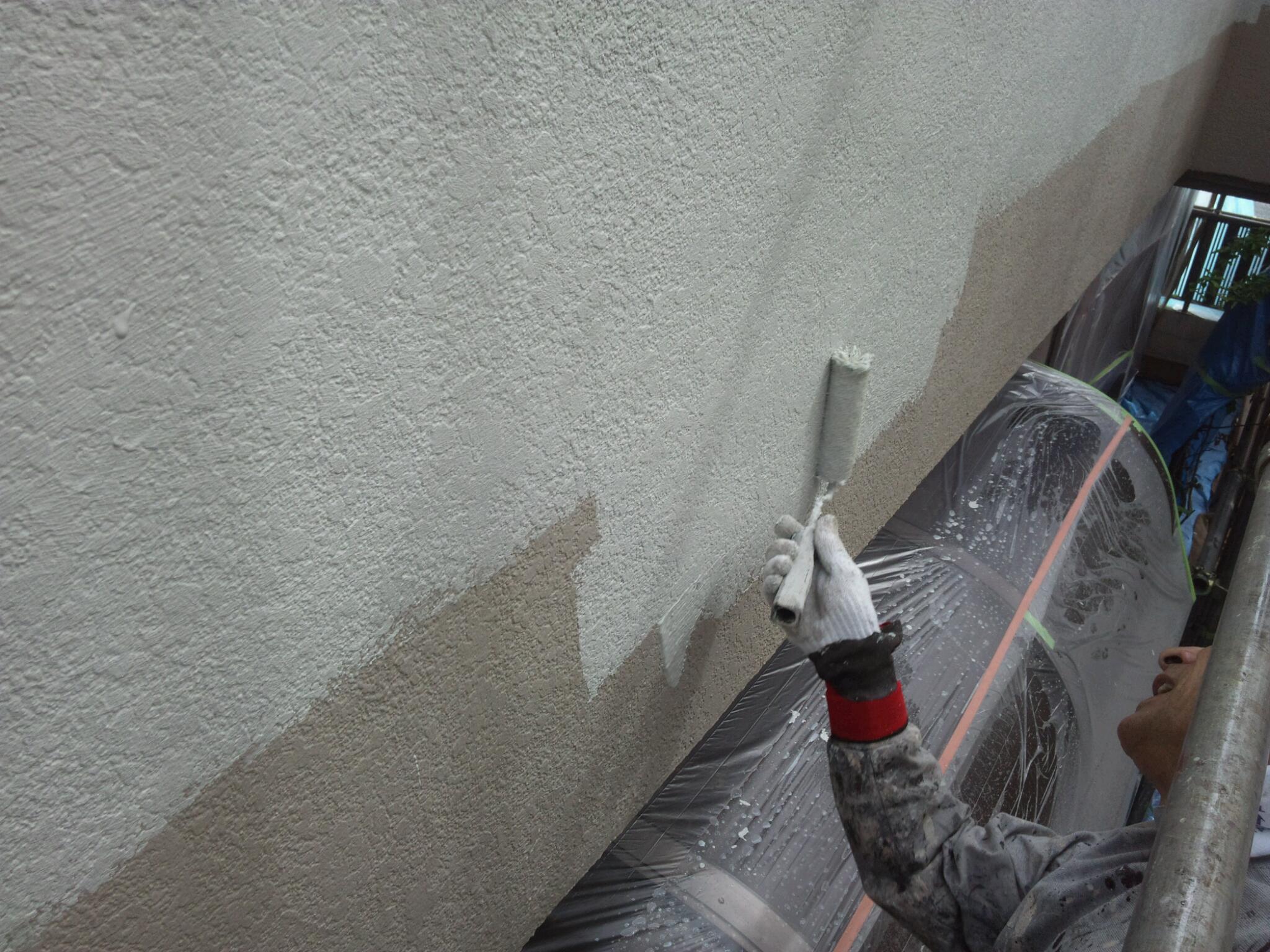 まずは外壁の下地 フィーラー塗りから。