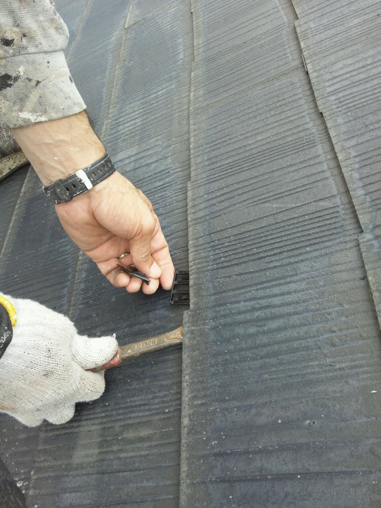 その後コロニアル屋根のタスペーサーの挿入。