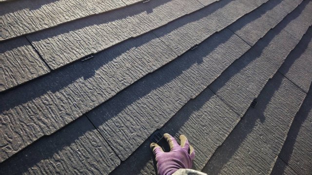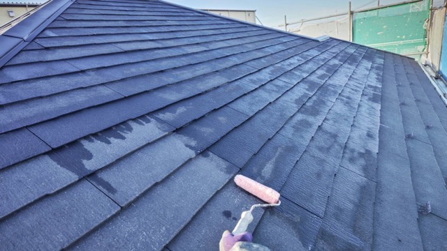 屋根 タスぺーサー挿入作業及びプライマー塗装