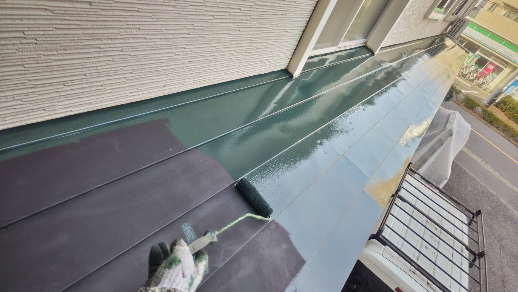 下屋根 上塗り塗装