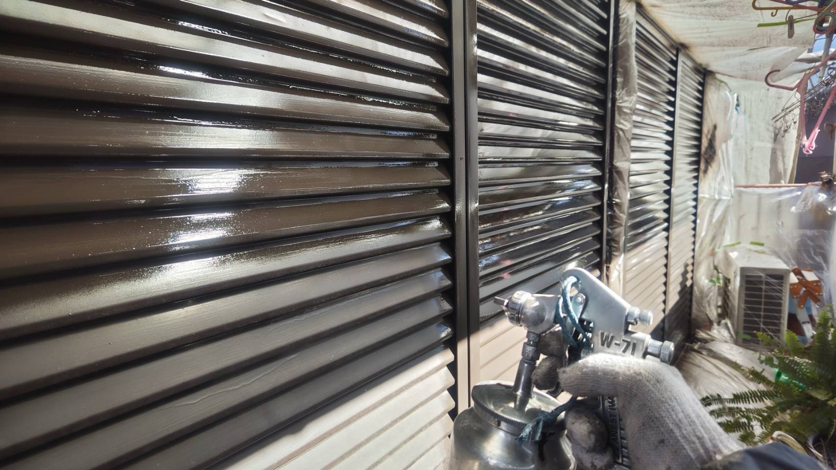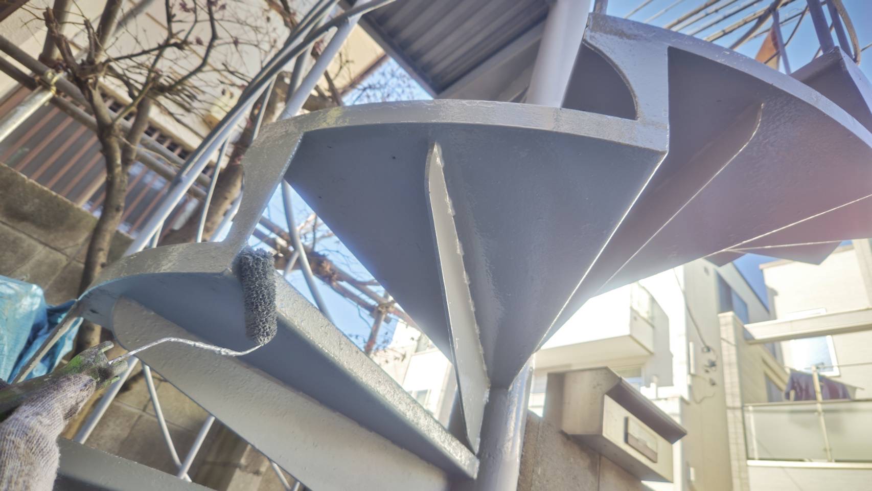 雨戸、鉄骨階段 上塗り塗装IMG_3043IMG_3045IMG_3074IMG_3075