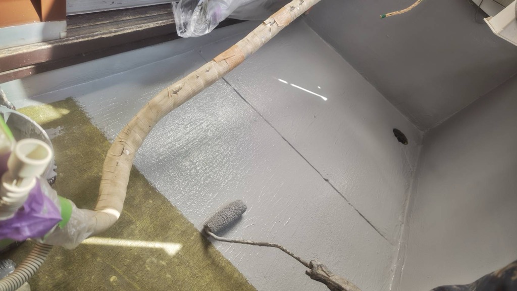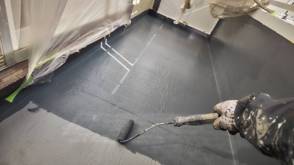 ベランダ防水 プライマー及び主剤、トップコート塗装