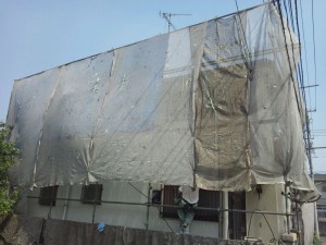 さて初日ですので、まずは足場の組み立てをさせていただきました。