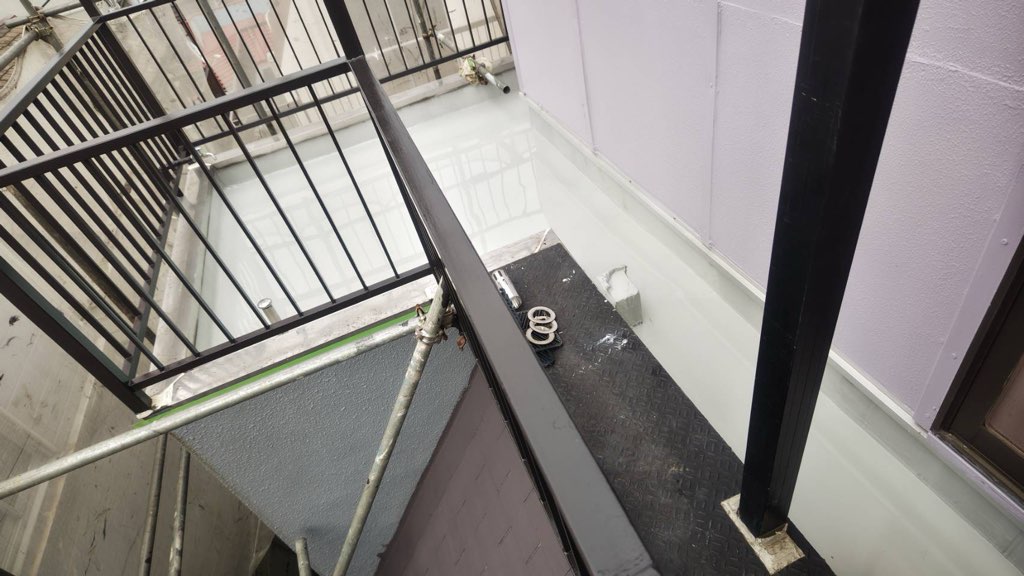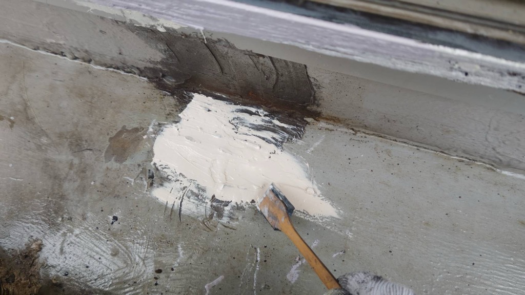 屋上 防水端末シール、ウレタン主剤塗布作業