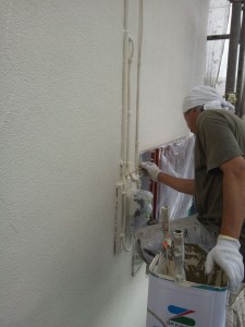 昨日の続きで、外壁の上塗りをセラミクリーンにて塗装。