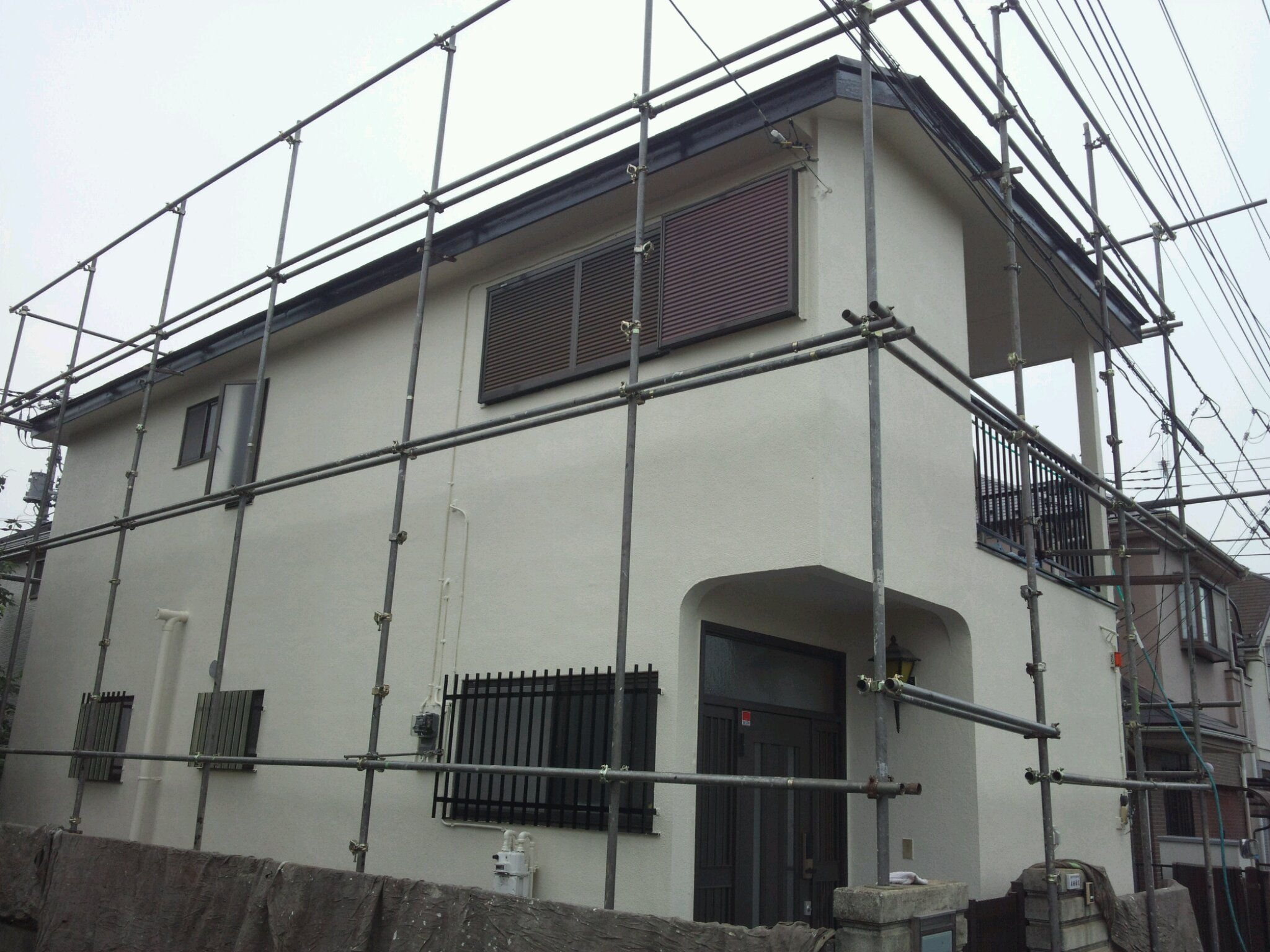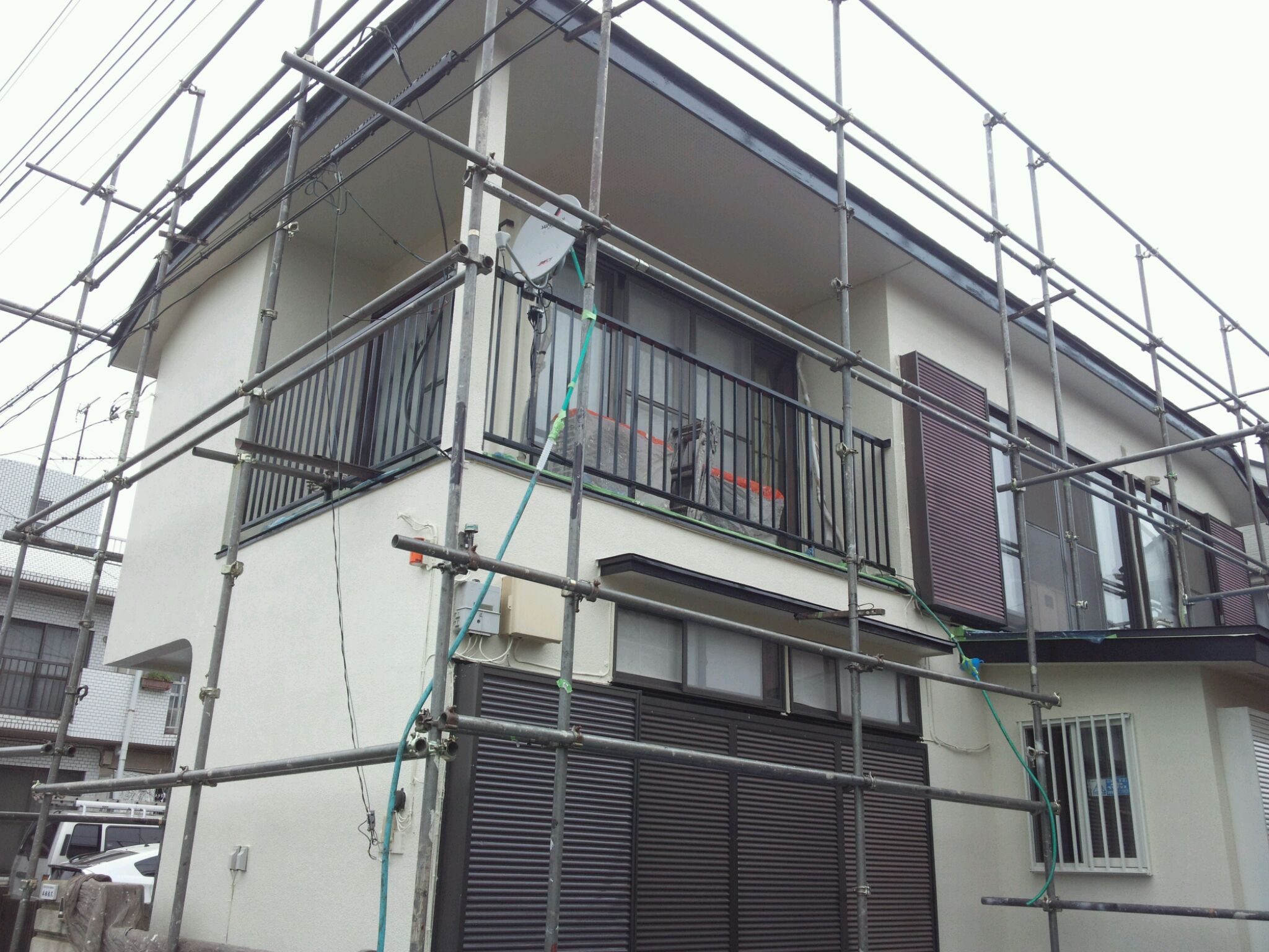 塗装工事は本日ほぼ完了しておりますので、16日には足場の解体をいたしたいと思います。