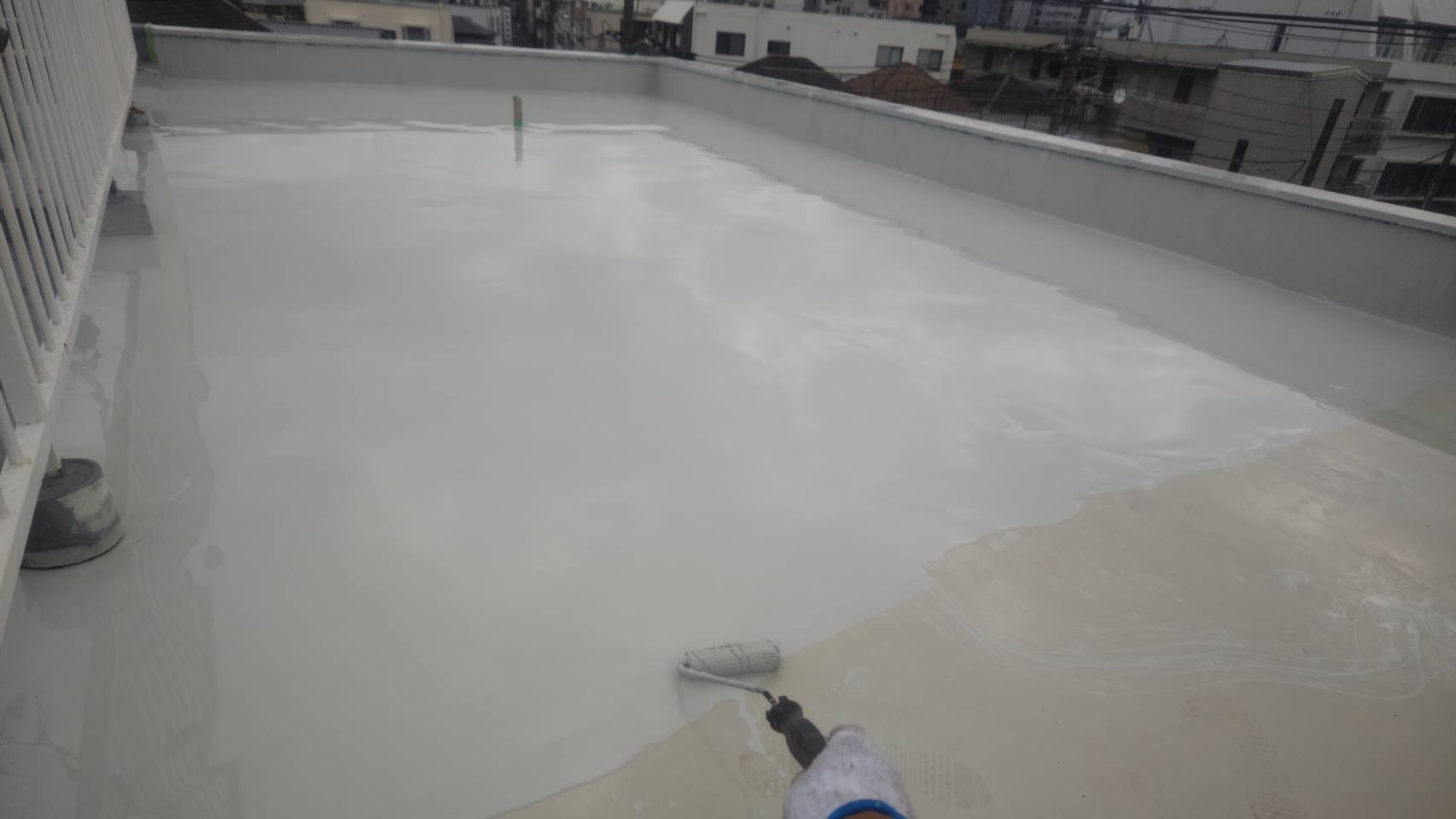 屋上防水 ウレタン主剤2回目塗布