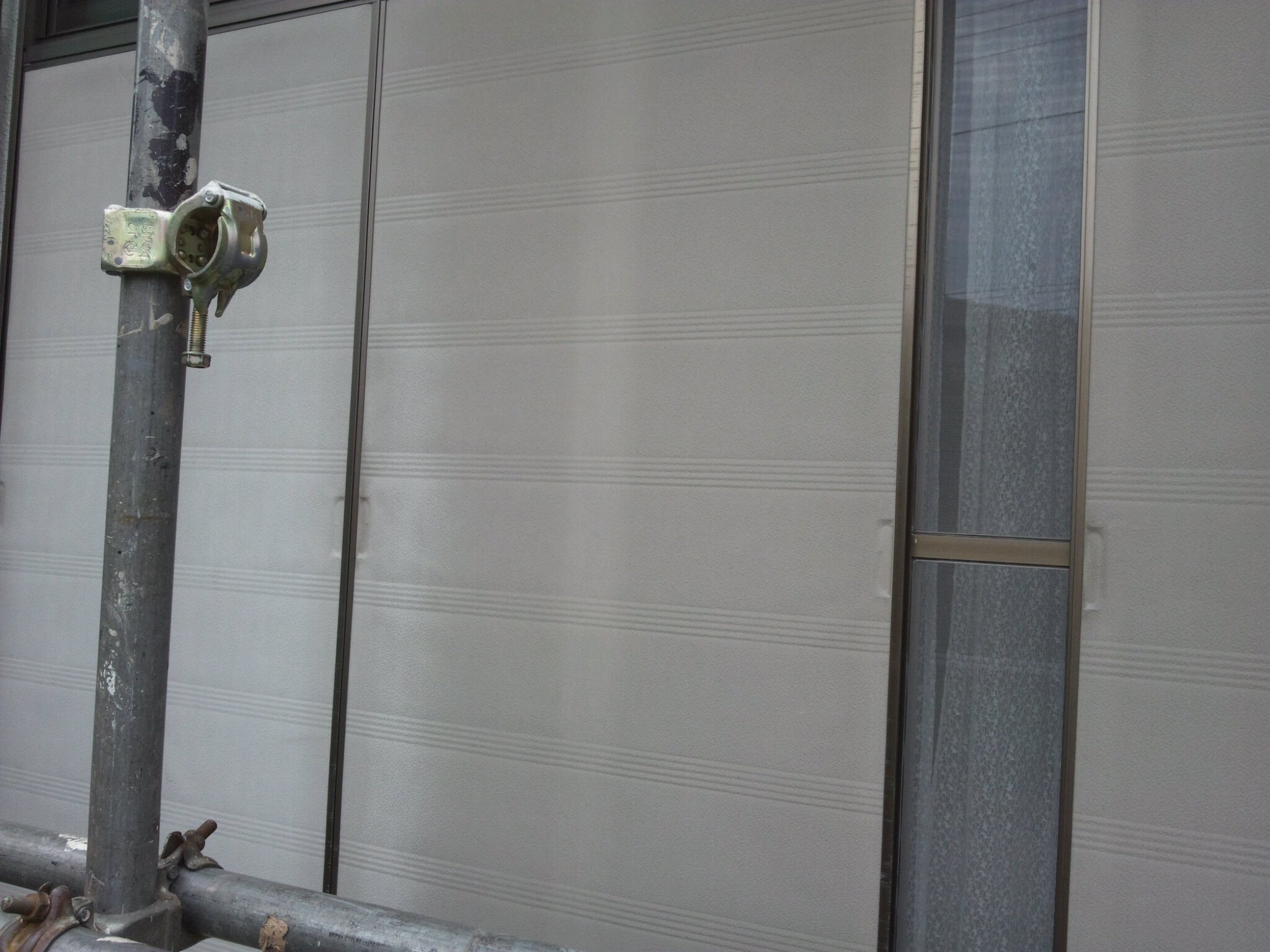 外壁のチョーキング(表面が粉をふいていて撥水性能がない壁)がおきており、日焼けも進んでおります。そろそろ限界の壁だと思います。