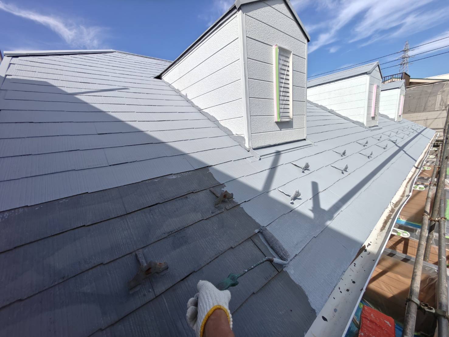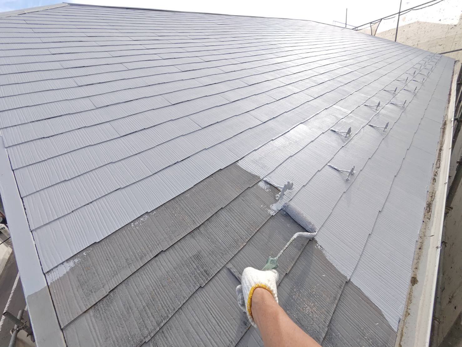 コロニアル屋根 タスペーサー挿入作業