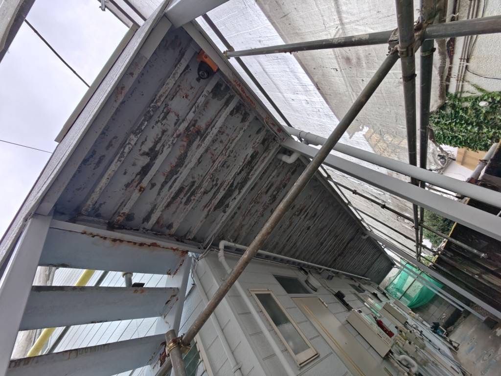 共用廊下鉄骨 けれん作業及び錆止め塗装IMG_6552IMG_6553IMG_6554