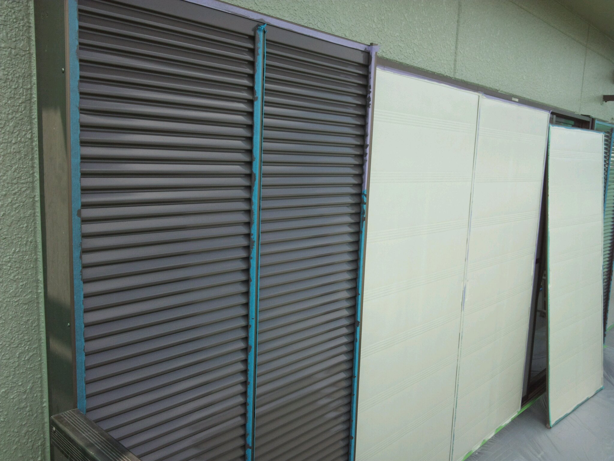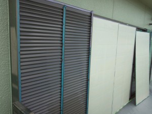 外壁が終わり次第、養生を取りながらトタン霧除けや雨戸・戸袋等も塗らせていただきました。
