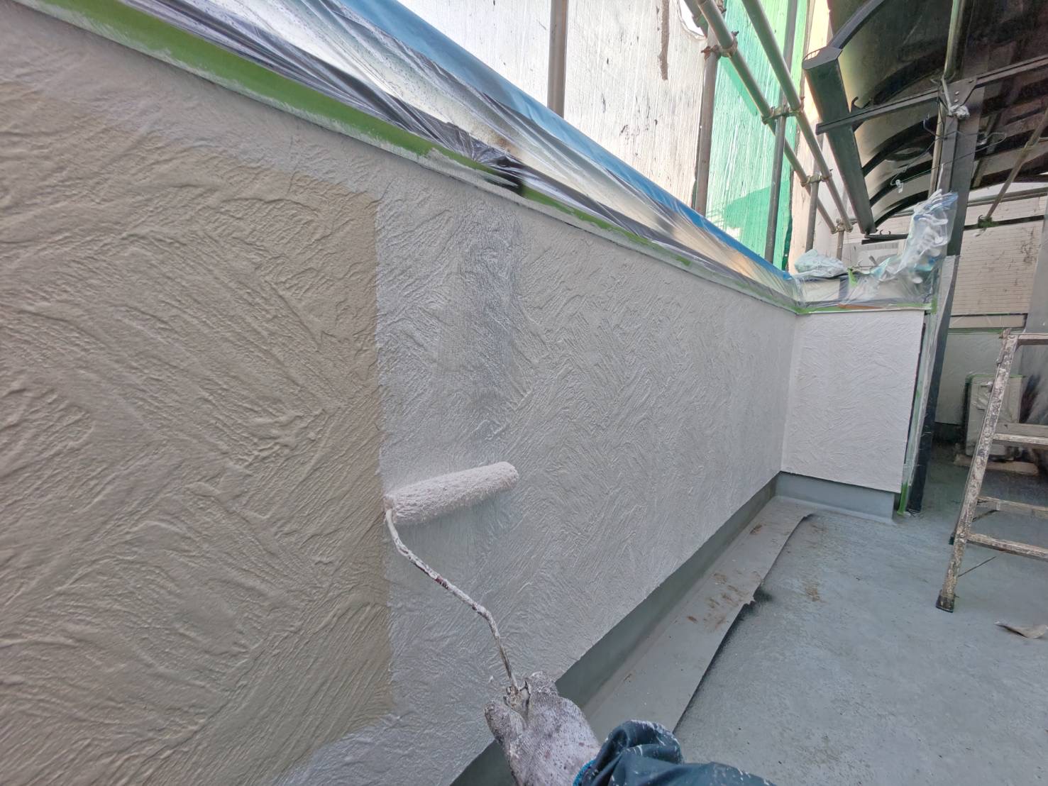 外壁 養生作業、下塗りフィーラー塗装IMG_7324IMG_7326IMG_7327