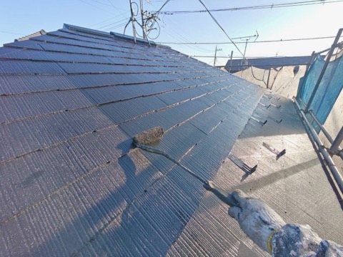 コロニアル屋根 下塗りプライマー、中塗り及び上塗り塗装