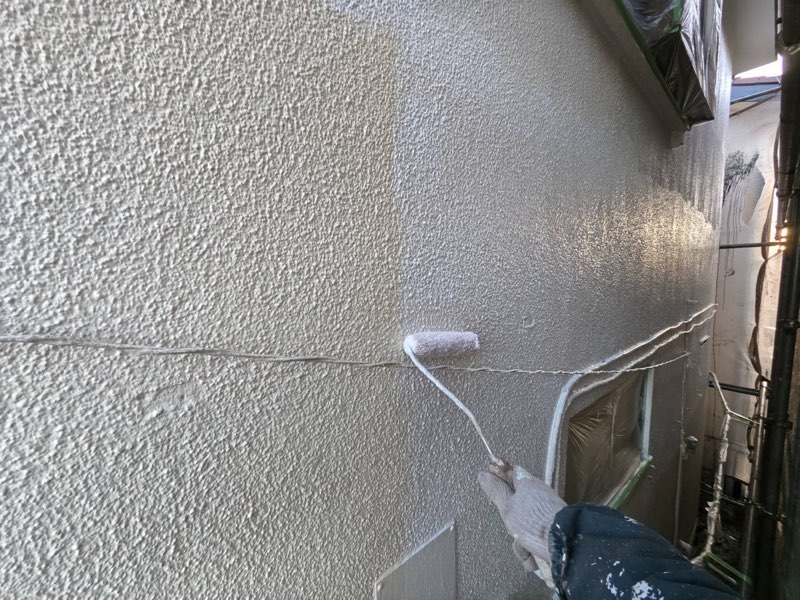 外壁 養生作業及び下塗りフィーラー塗装