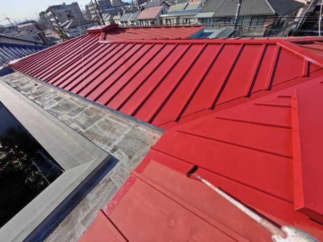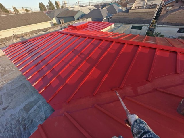 屋根 トタン部さび止め、上塗り 塗装