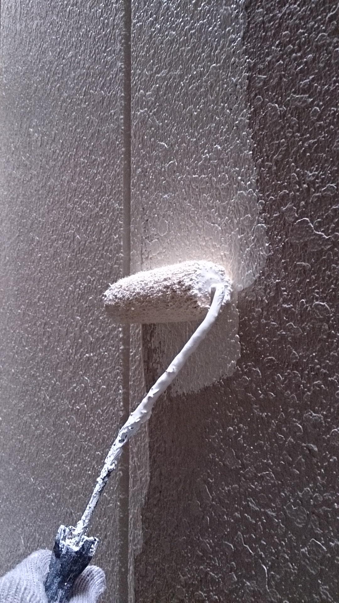 北面と西面の外壁、養生と下塗り フィーラー塗装をいたしました。
