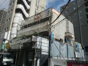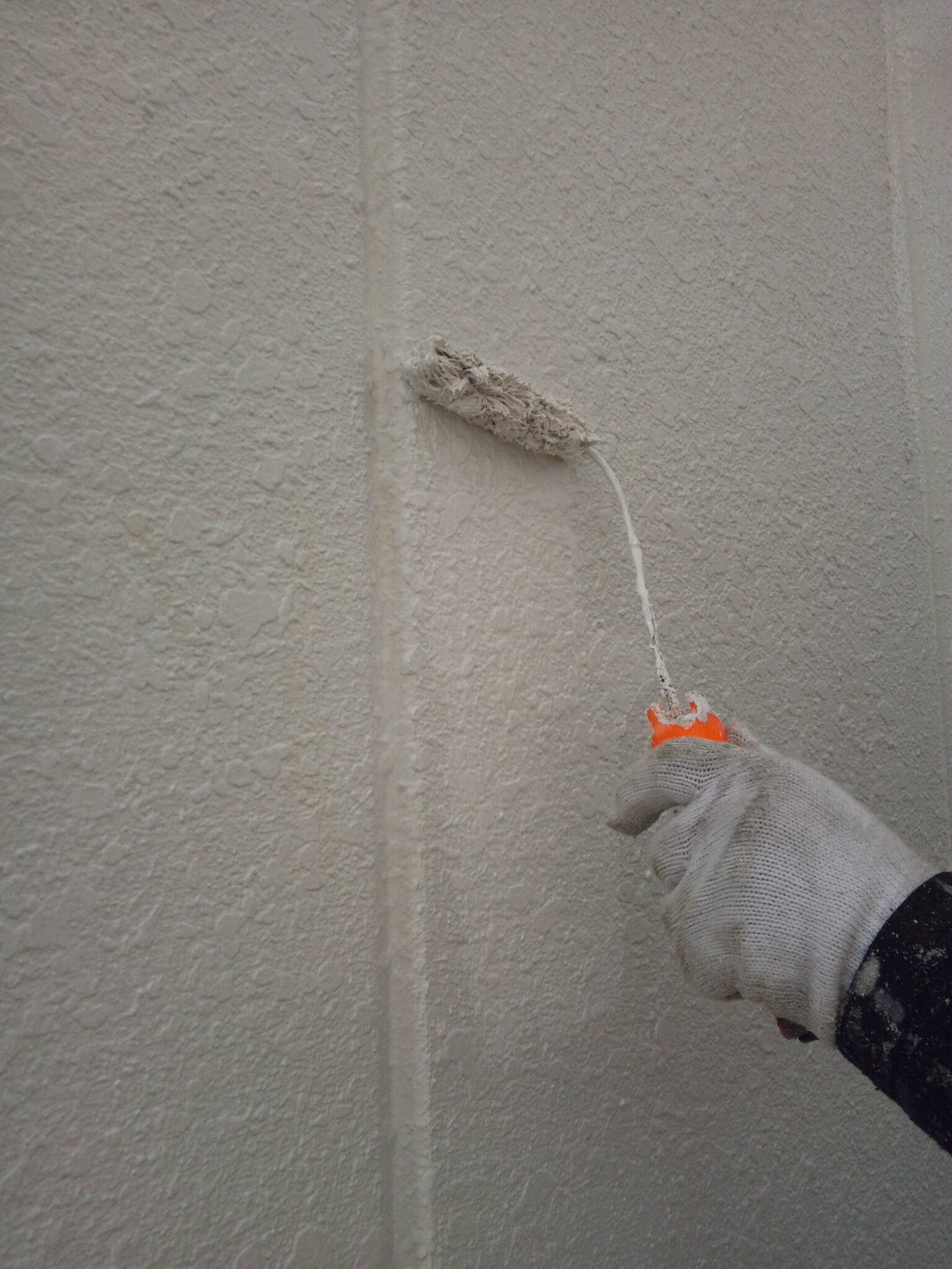 前回の続きで、中塗り及びセラミシリコンによる上塗りを塗装して、残り南と東面の養生を施工いたしました。