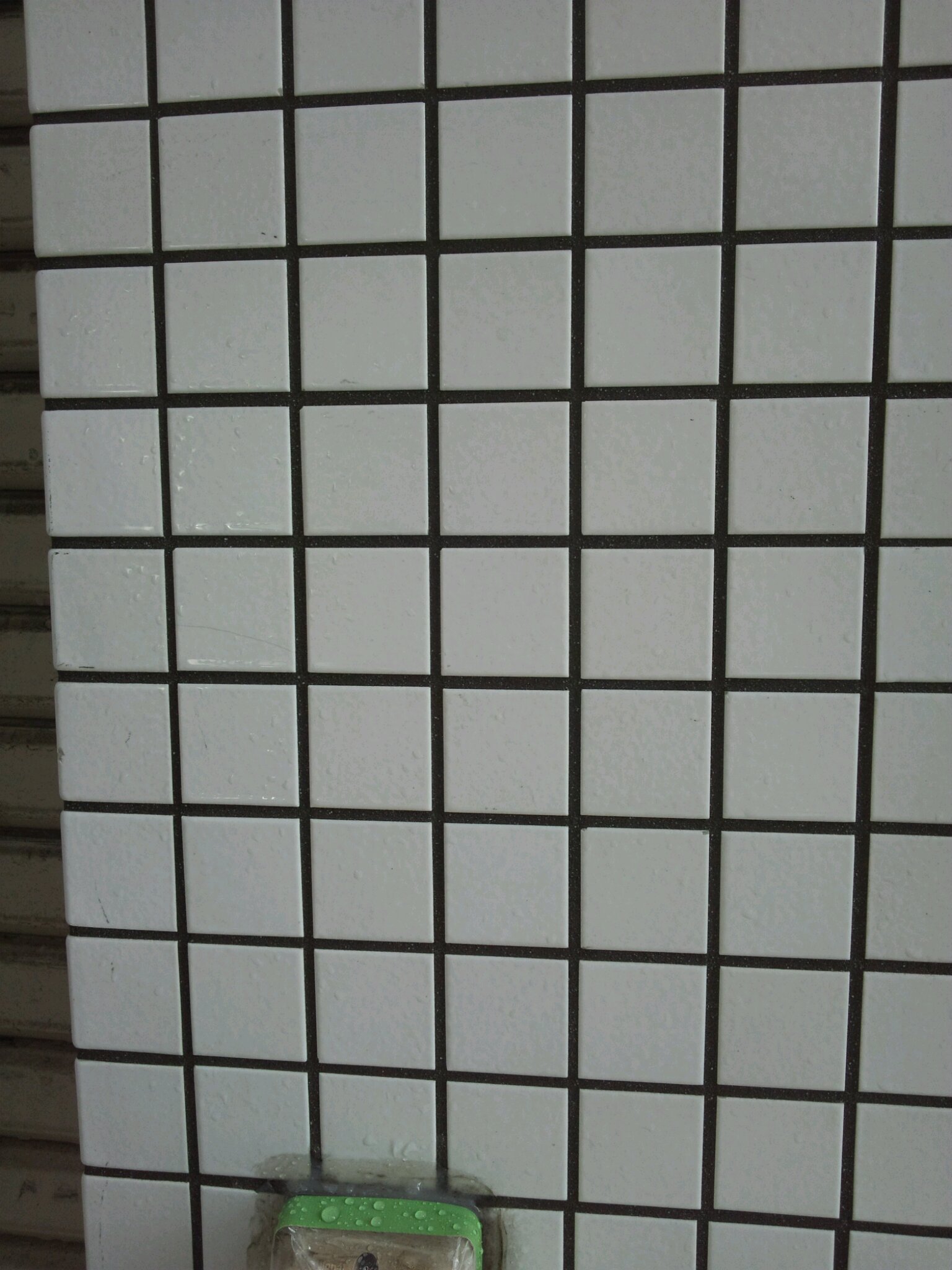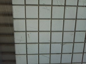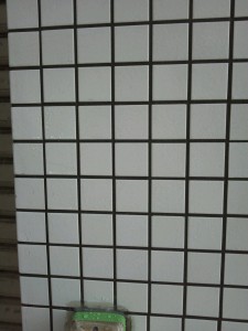 まずはタイルの洗浄とクリアー塗りですが、1F店舗様が休日がなく朝9時よりオープンのためそれよりも前に一度、薬品による洗いだけ行いました。