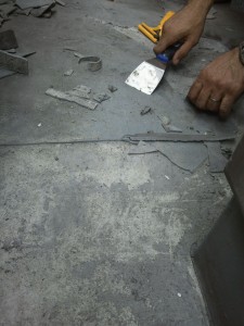 旧塗膜が施工時より浮いていたらしく、あちらこちらで膨らみがあり全て撤去いたしました。