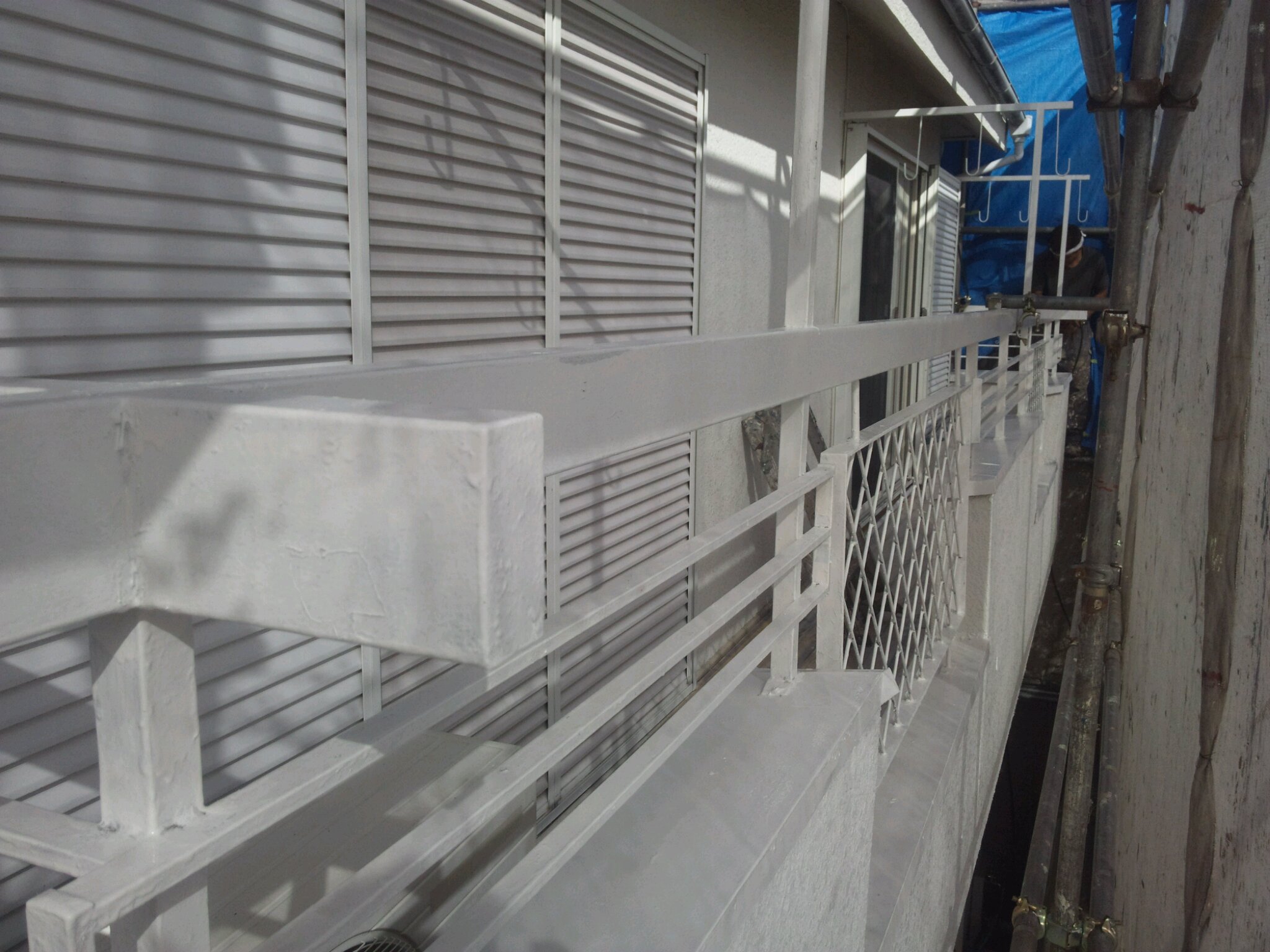 ベランダの手すりにサビ止め塗装をして、最後に高圧洗浄です。