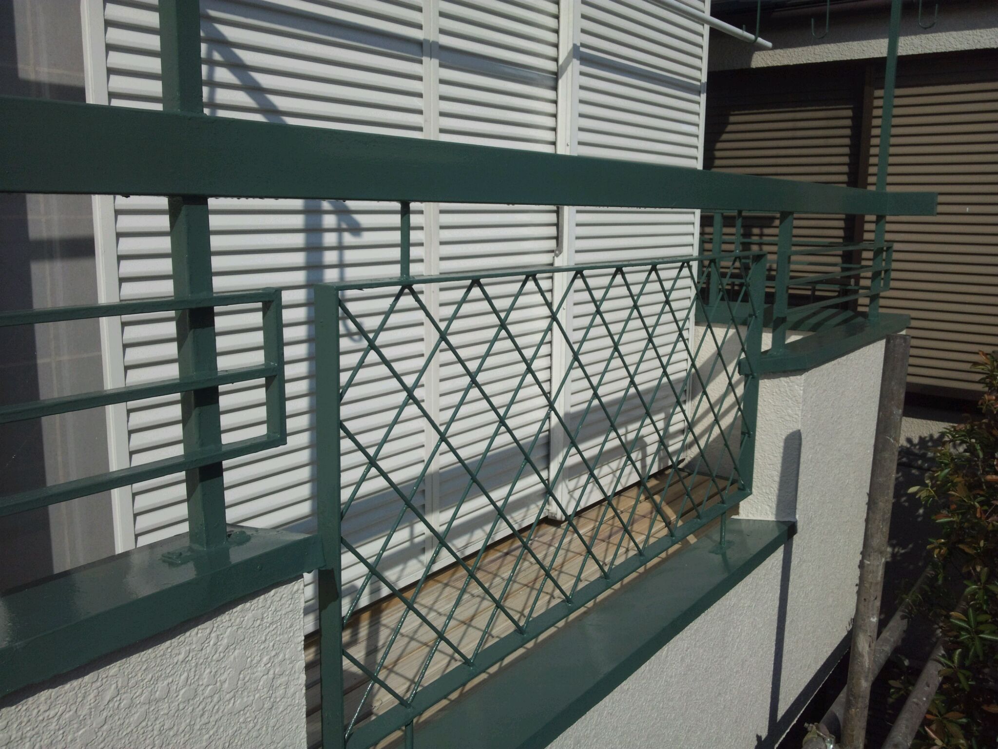ベランダ手すり鉄骨の上塗り塗装。