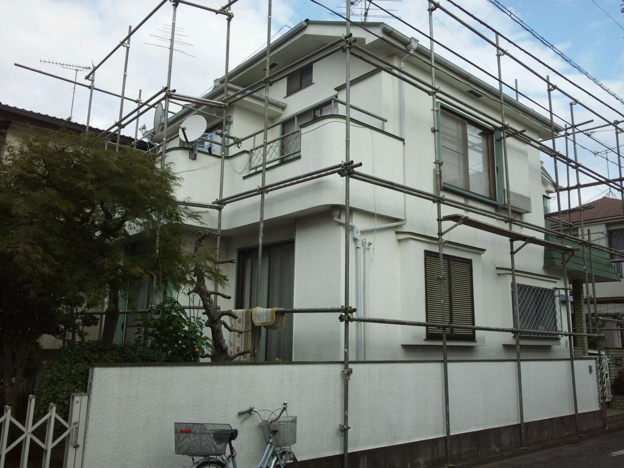 かなりあちこち傷んでいて、特にベランダ床の防水が膨れだしていて雨漏れ寸前の状態でした。