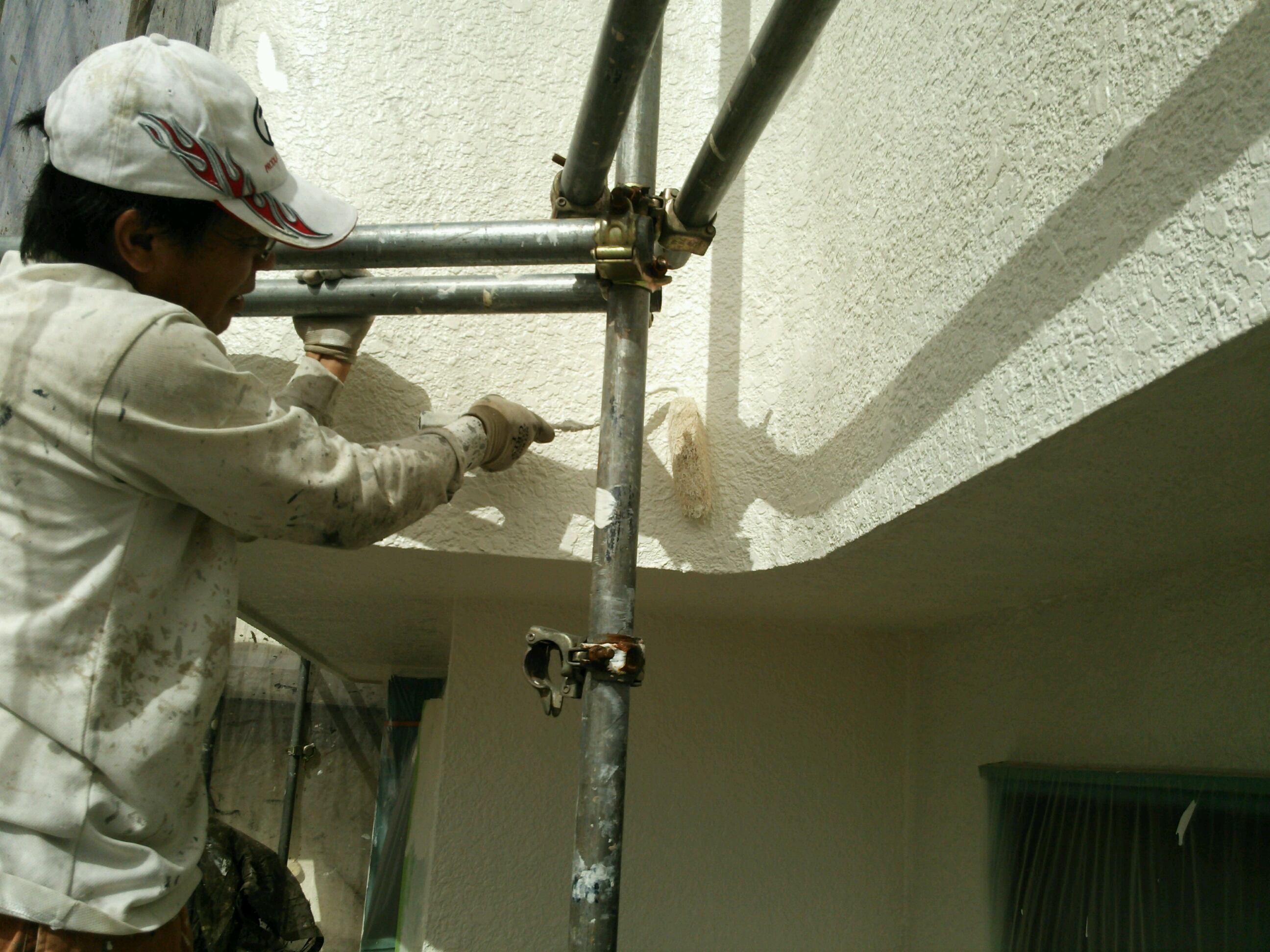 昨日に引き続き、外壁の中塗り及び上塗り塗装です。
