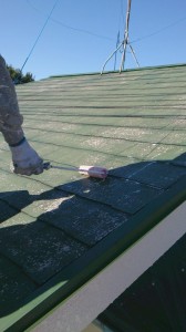 コロニアル屋根のプライマー及び中塗り、上塗り。