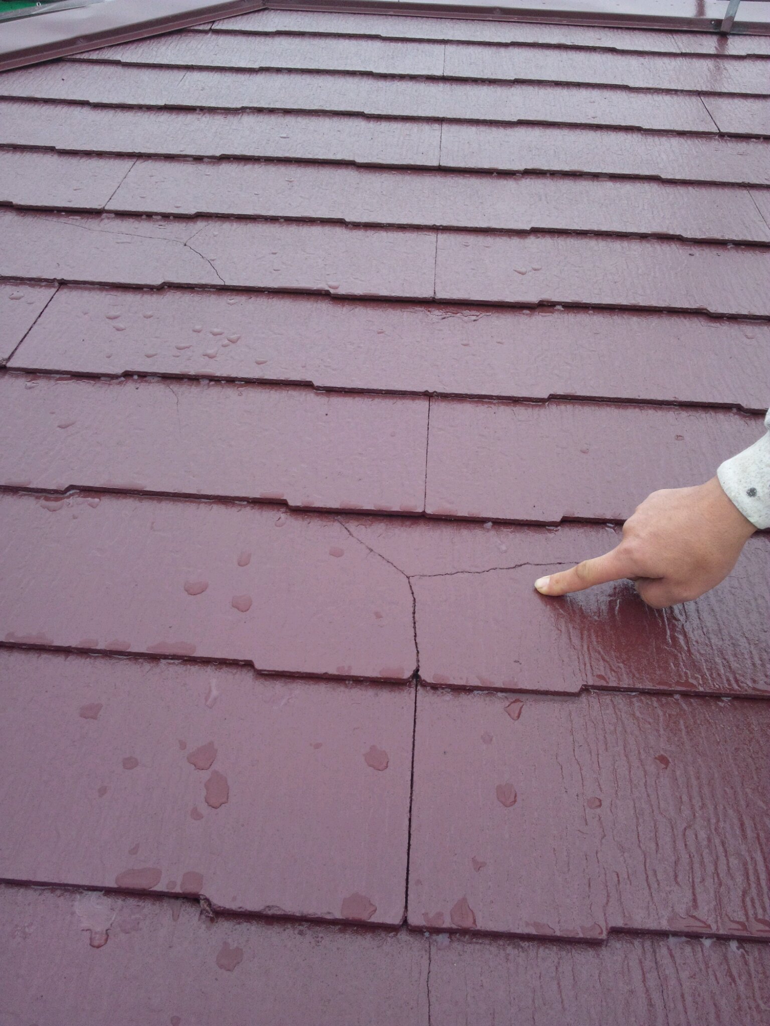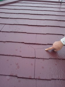 また、コロニアル屋根ですが中塗りをしてわかりましたが下の写真のようにかなり多くのひびがありました。