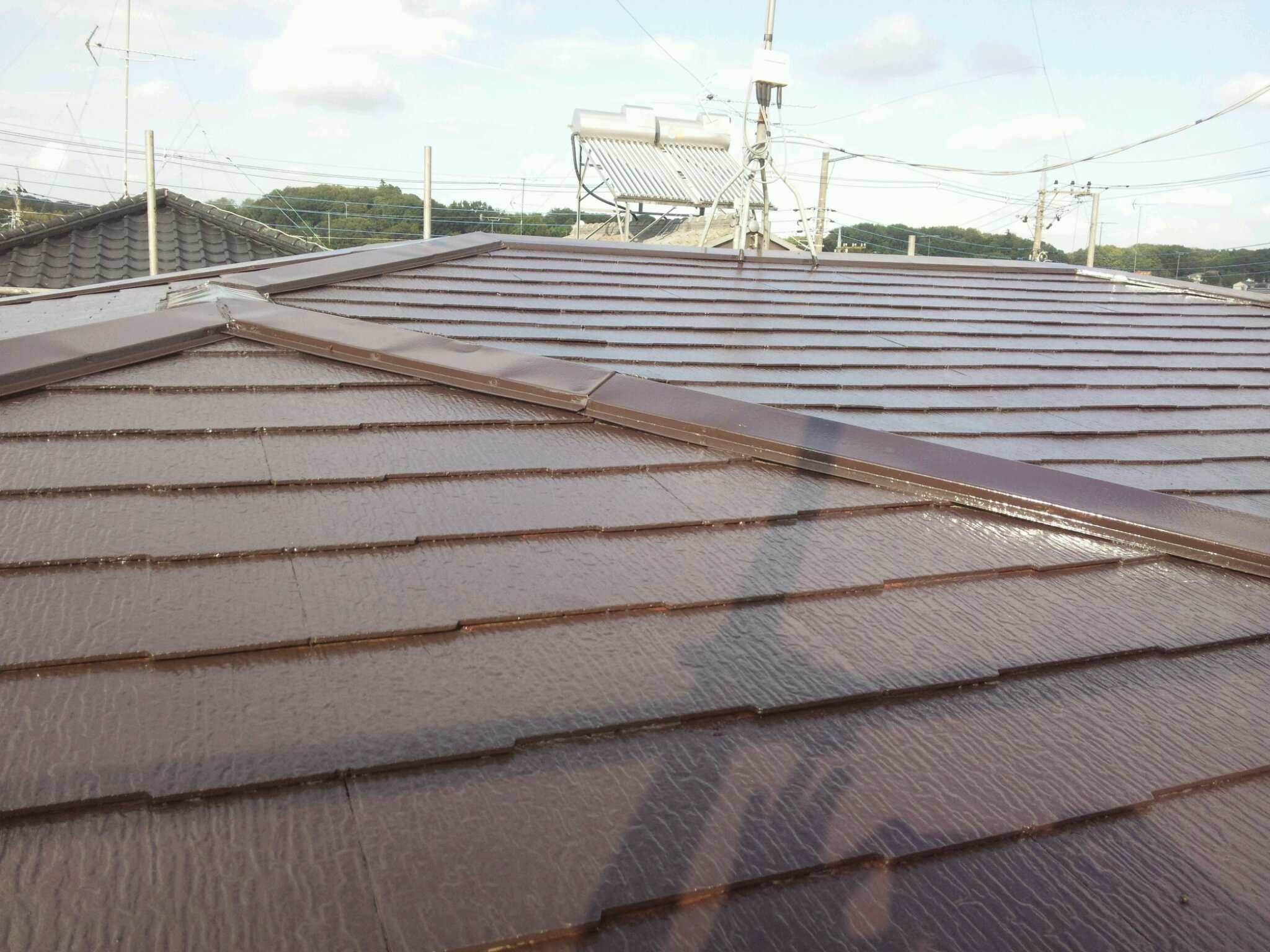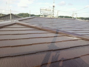 コロニアル屋根の仕上げ塗り。