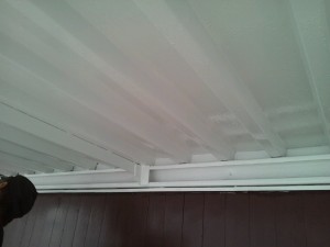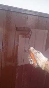軒裏、漆喰小壁の塗装をセラミタウンマイルドにて。