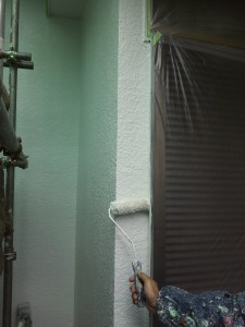 乾きを見て、上塗りのセラミシリコンを塗装いたしました。